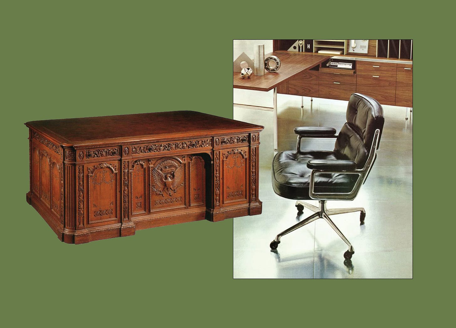 When thinking about a chair worthy of sitting behind the Resolute Desk, very few options feel grand enough to meet the moment. Most are either too traditional, too bland, or too self-important. But for this redesign, choosing a piece by one of the most accomplished American furniture designers, Charles and Ray Eames, felt exactly right. The Time-Life Chair, originally created for the executive floor of the Time-Life Building in New York, has the presence and quiet authority the room needs. It introduces the first deliberate juxtaposition in the space: the intricate, historic weight of the Resolute Desk paired with a sleek, modern American classic. The contrast is not accidental. It sets the tone for a room that respects history without being trapped by it.