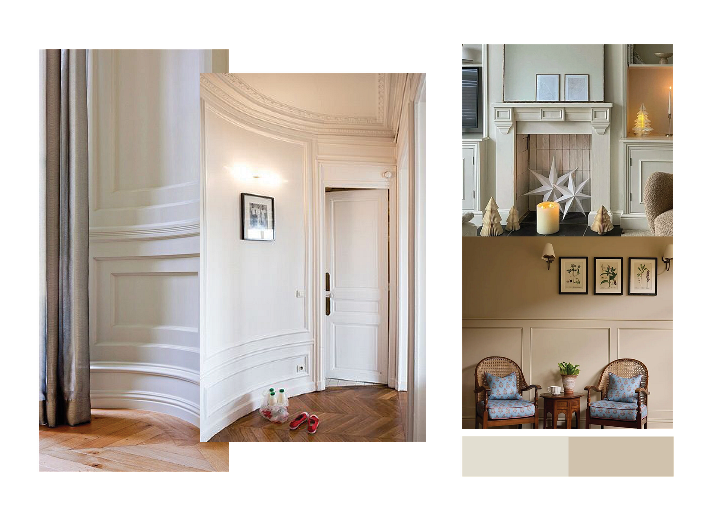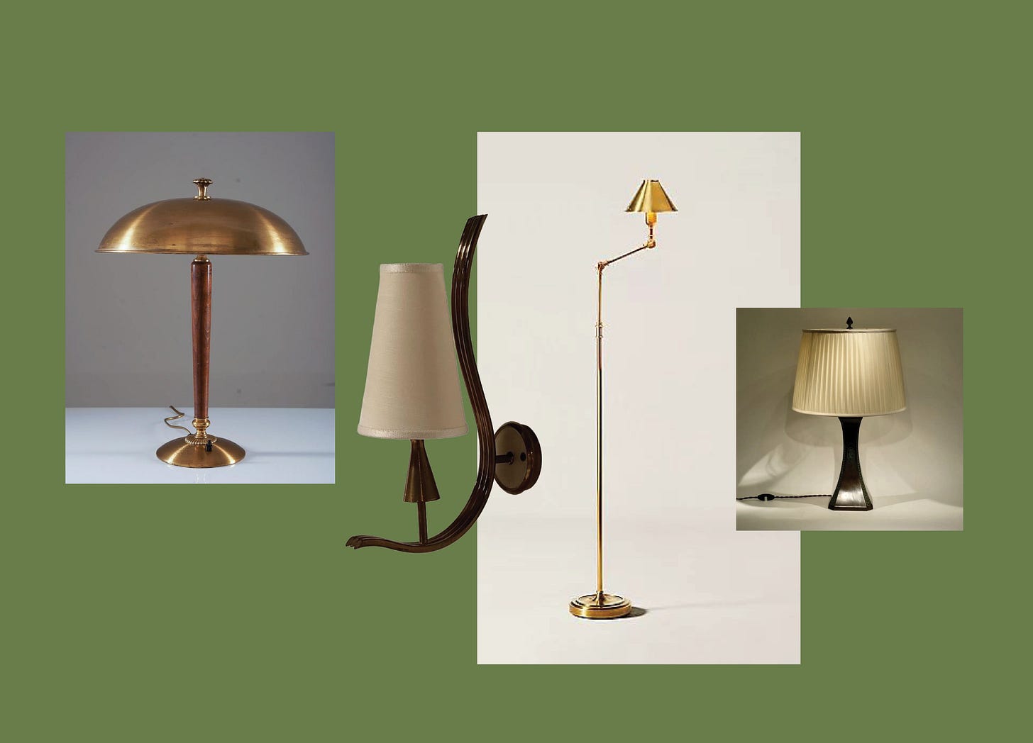 A mix of sculptural lamps and sconces in warm metals and soft shades. These silhouettes bring atmosphere without visual mass, adding quiet elegance and gentle light that supports the room’s warmth rather than overwhelming it.