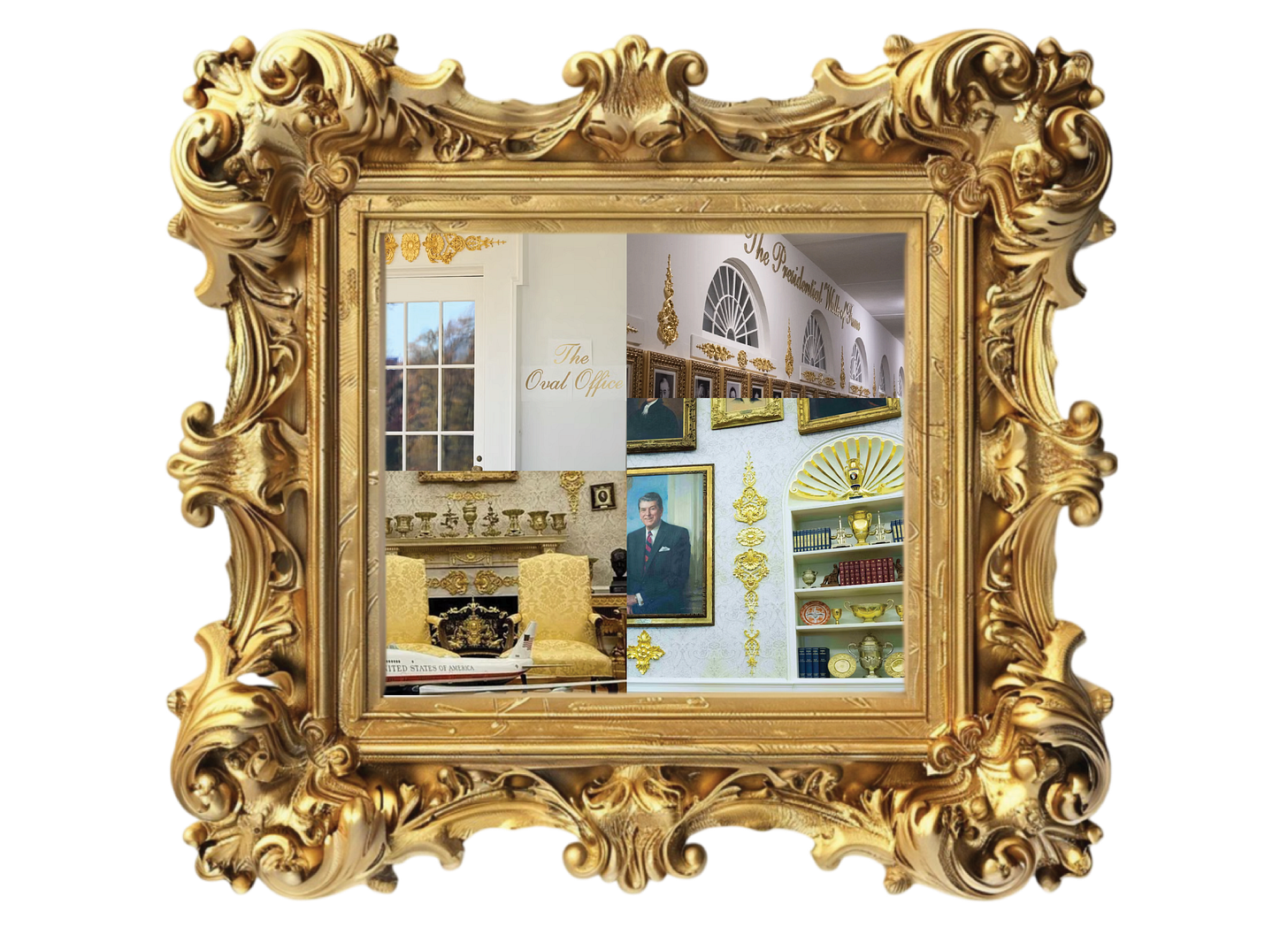 Watching this current administration operate inside this version of the Oval Office has made it impossible to look away. Previous administrations left the room feeling stuffy or outdated or a bit like a museum display, but this is something entirely different. The space now looks like it has been dipped in a vat of discount gold spray paint and decoration, the kind you would find in an aisle of Home Depot. Every surface seems to shout for attention. There is trim on top of trim. Gold piled onto more gold, as if subtlety were forbidden. It is not just gaudy. It is overwhelming, anxious, and strangely insecure, turning one of the most symbolically important rooms in the world into a stage set for a reality show about opulence. What used to be merely behind the times is now a full sensory assault, a room so saturated in metallic sheen that it practically reflects its own confusion back at you.